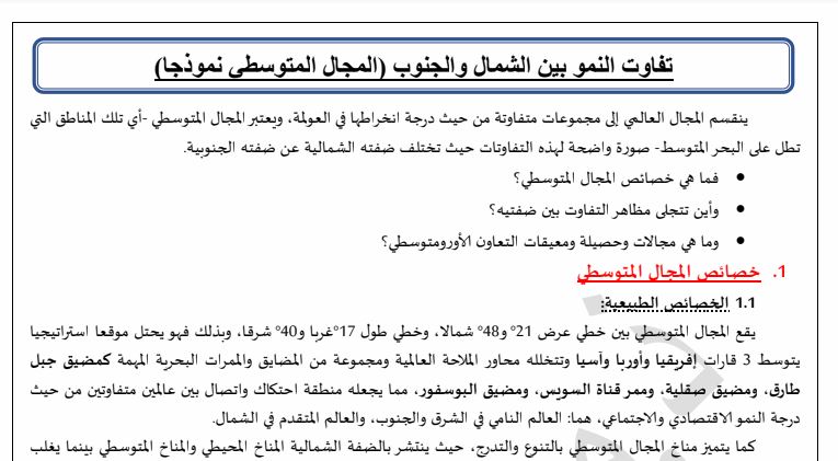 ملخص درس تفاوت النمو بين الشمال والجنوب المجال المتوسطي نموذجا Pdf